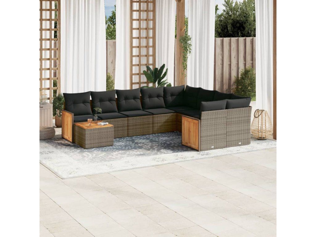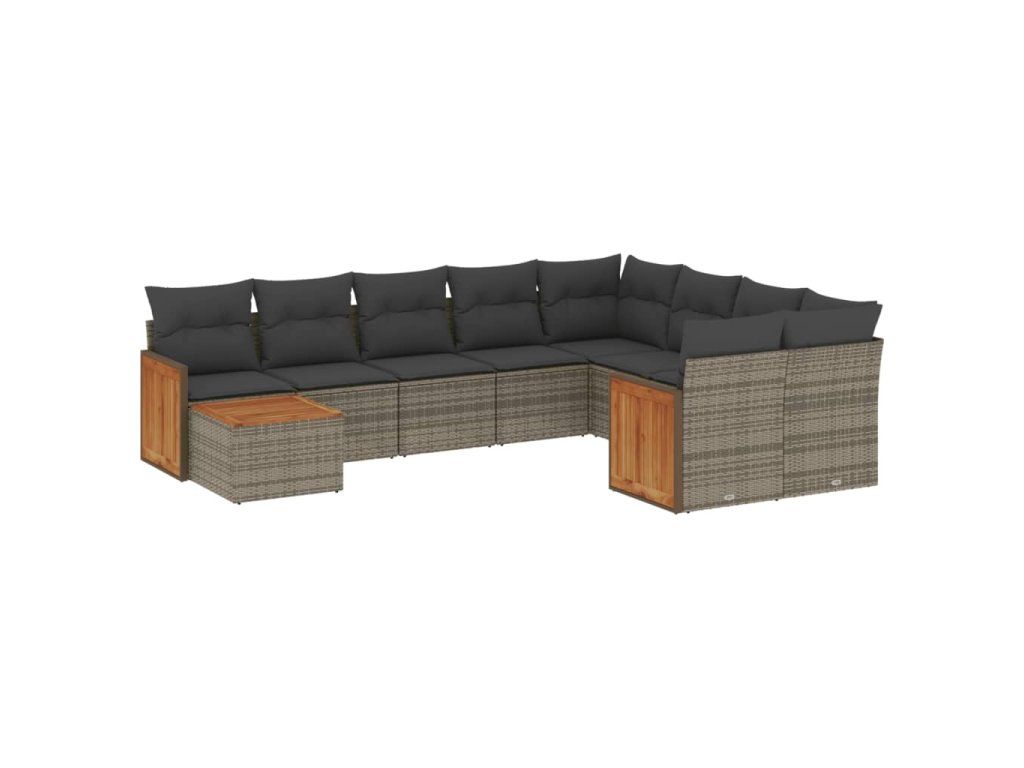 10dílná zahradní sedací souprava s poduškami šedá polyratan 3227999