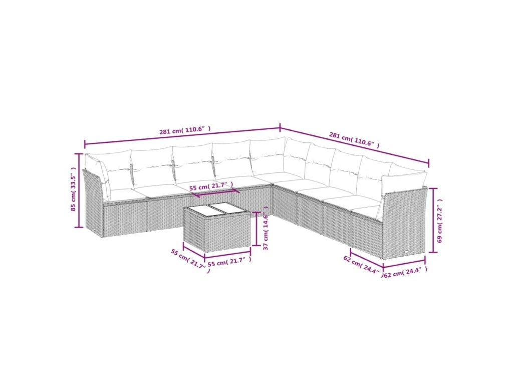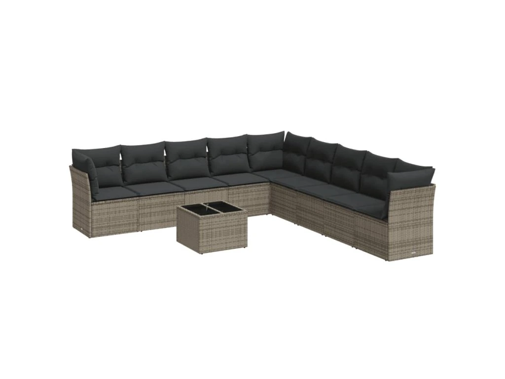 10dílná zahradní sedací souprava s poduškami šedá polyratan 3249629