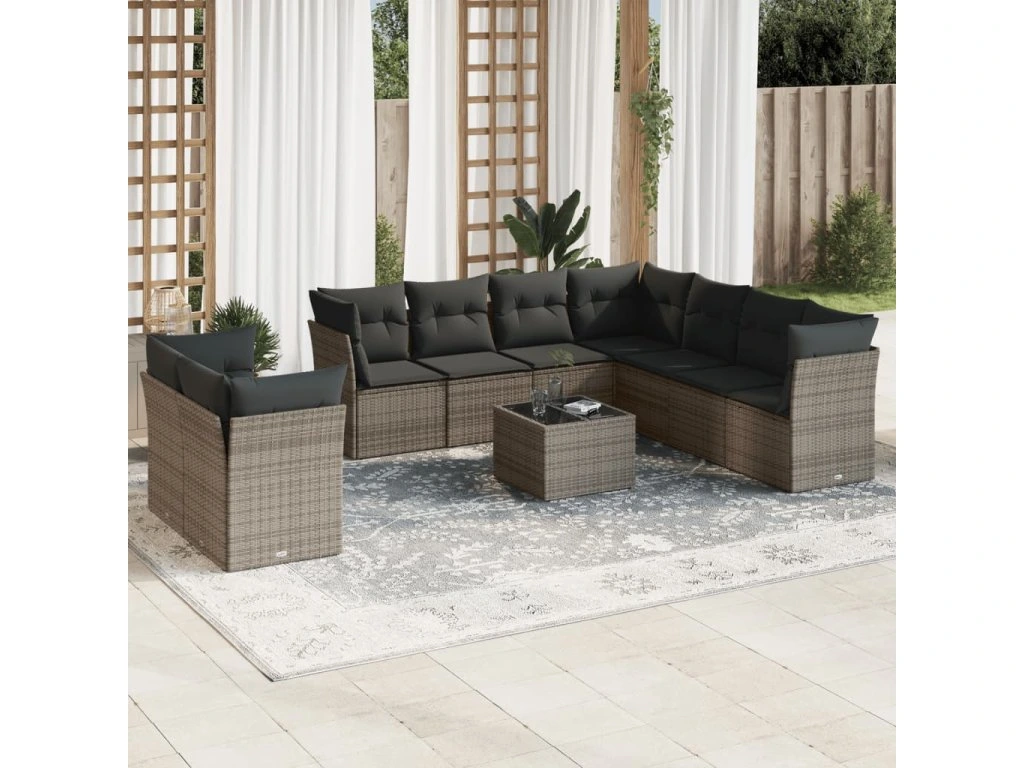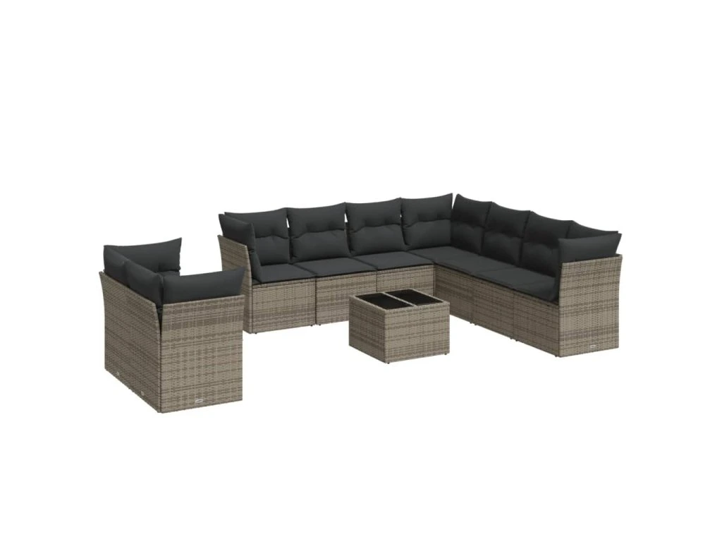 10dílná zahradní sedací souprava s poduškami šedá polyratan 3249689
