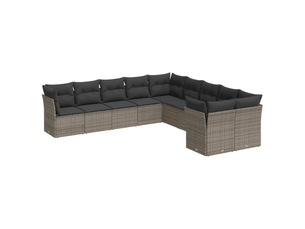10dílná zahradní sedací souprava s poduškami šedá polyratan 3250079