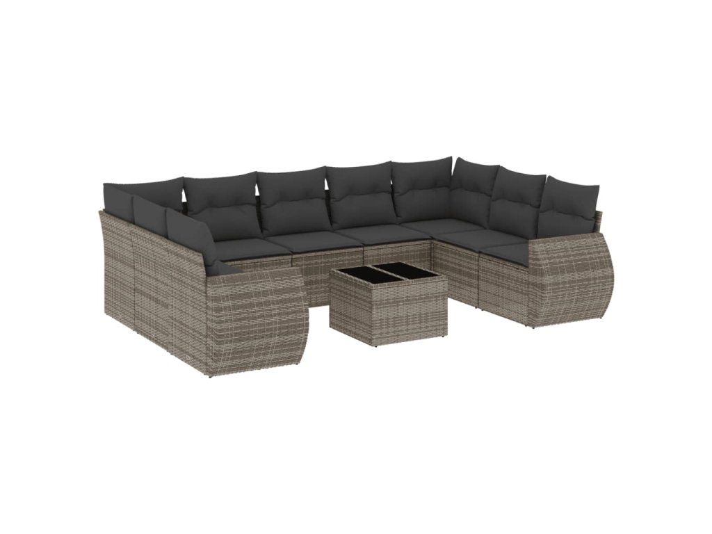 10dílná zahradní sedací souprava s poduškami šedá polyratan 3254147