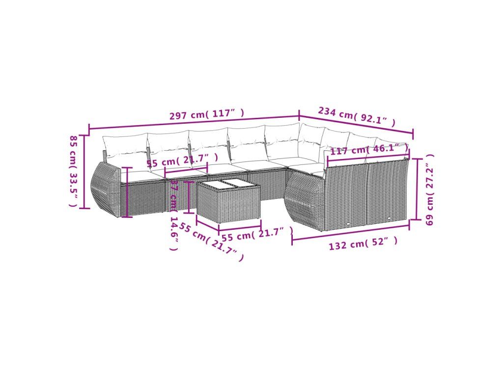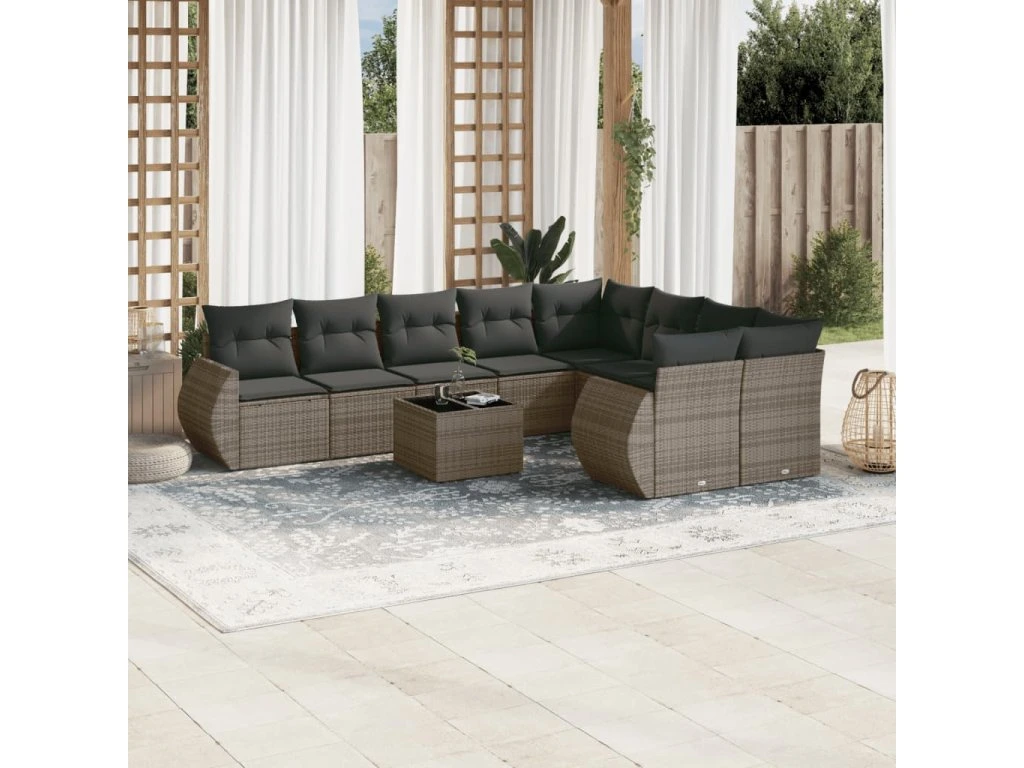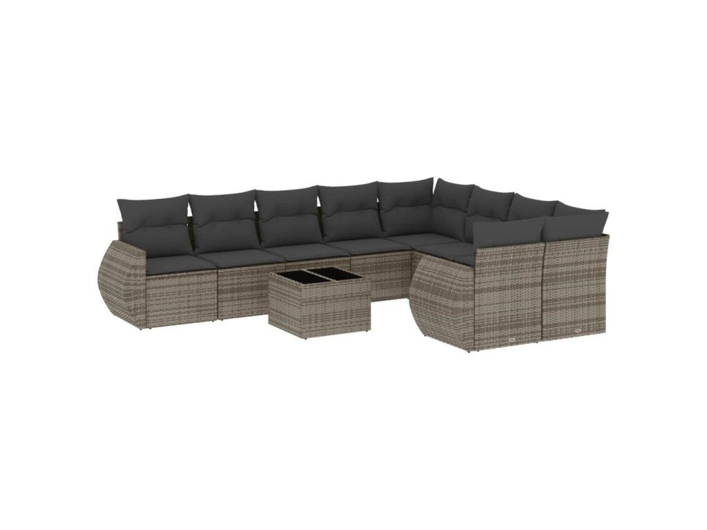 10dílná zahradní sedací souprava s poduškami šedá polyratan 3254187