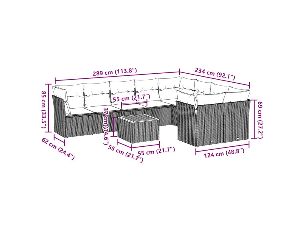 10dílná zahradní sedací souprava s poduškami šedá polyratan 3256152