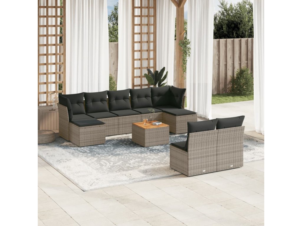 10dílná zahradní sedací souprava s poduškami šedá polyratan 3256193