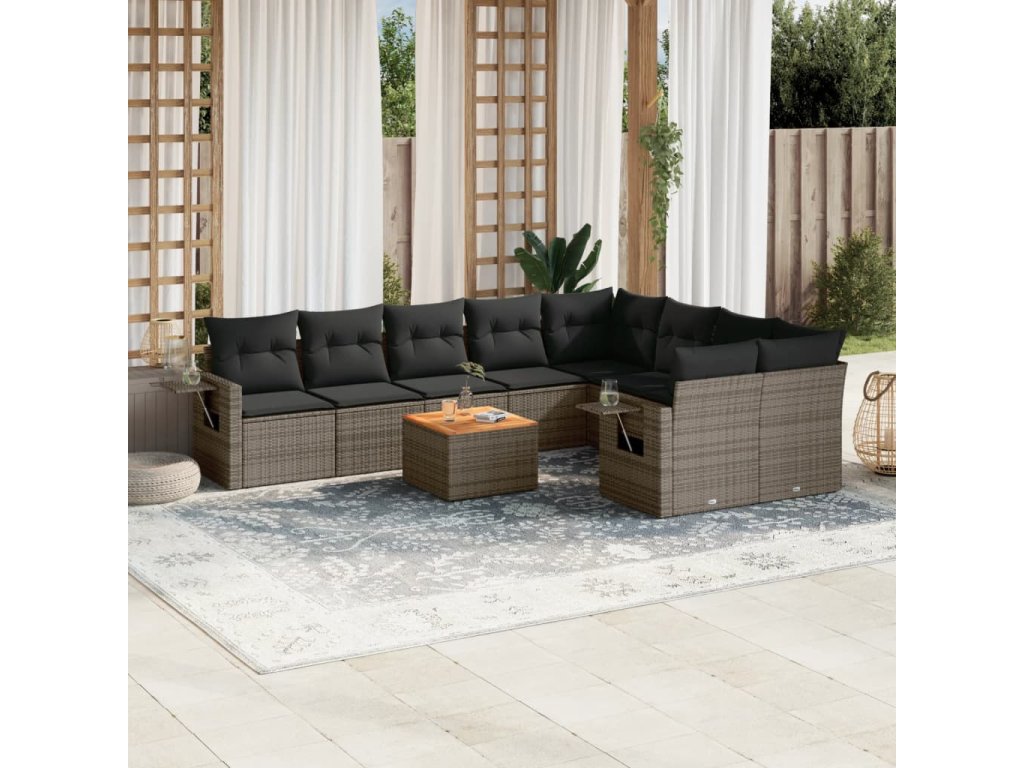 10dílná zahradní sedací souprava s poduškami šedá polyratan 3257054