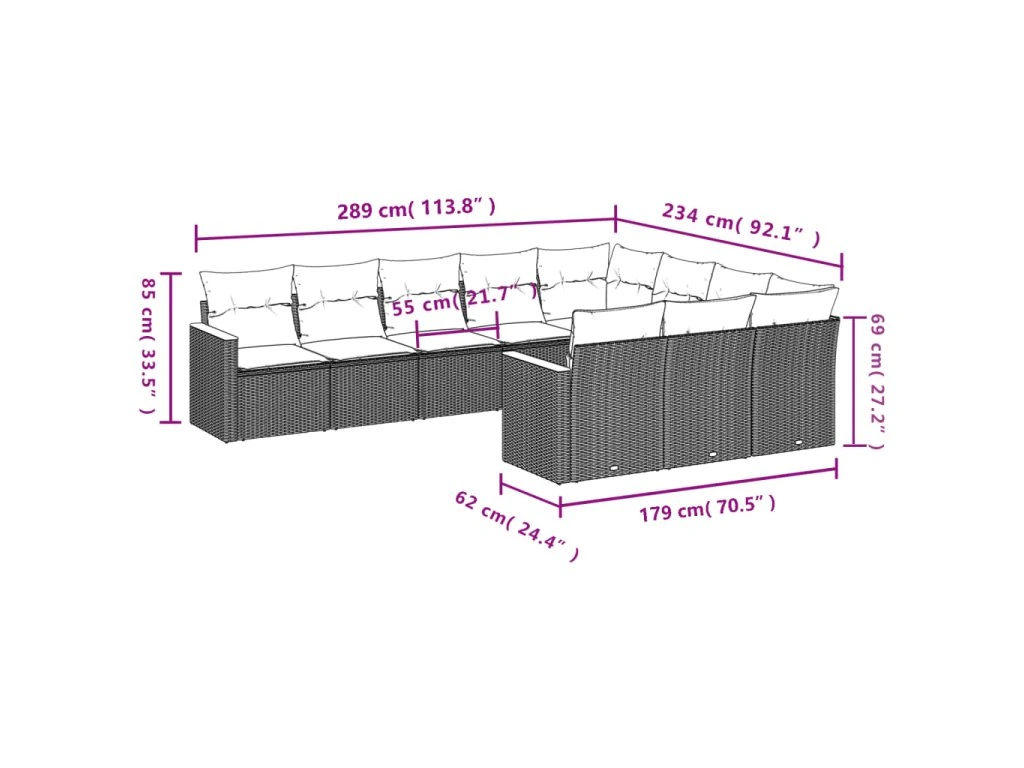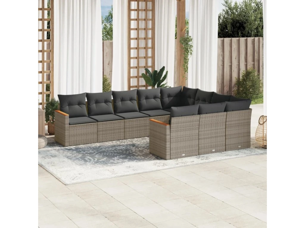 10dílná zahradní sedací souprava s poduškami šedá polyratan 3258742
