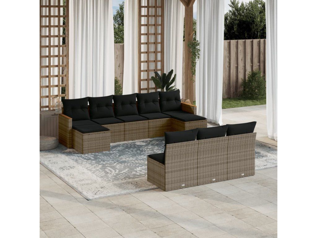 10dílná zahradní sedací souprava s poduškami šedá polyratan 3258791