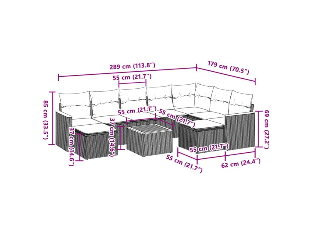 Tato zahradní sedací souprava je dokonalým doplňkem vaší zahrady, terasy nebo dvorku a poskytne vám pohodlné a příjemné místo, kde si můžete povídat s rodinou a přáteli nebo jen tak odpočívat a užívat si pobyt venku.