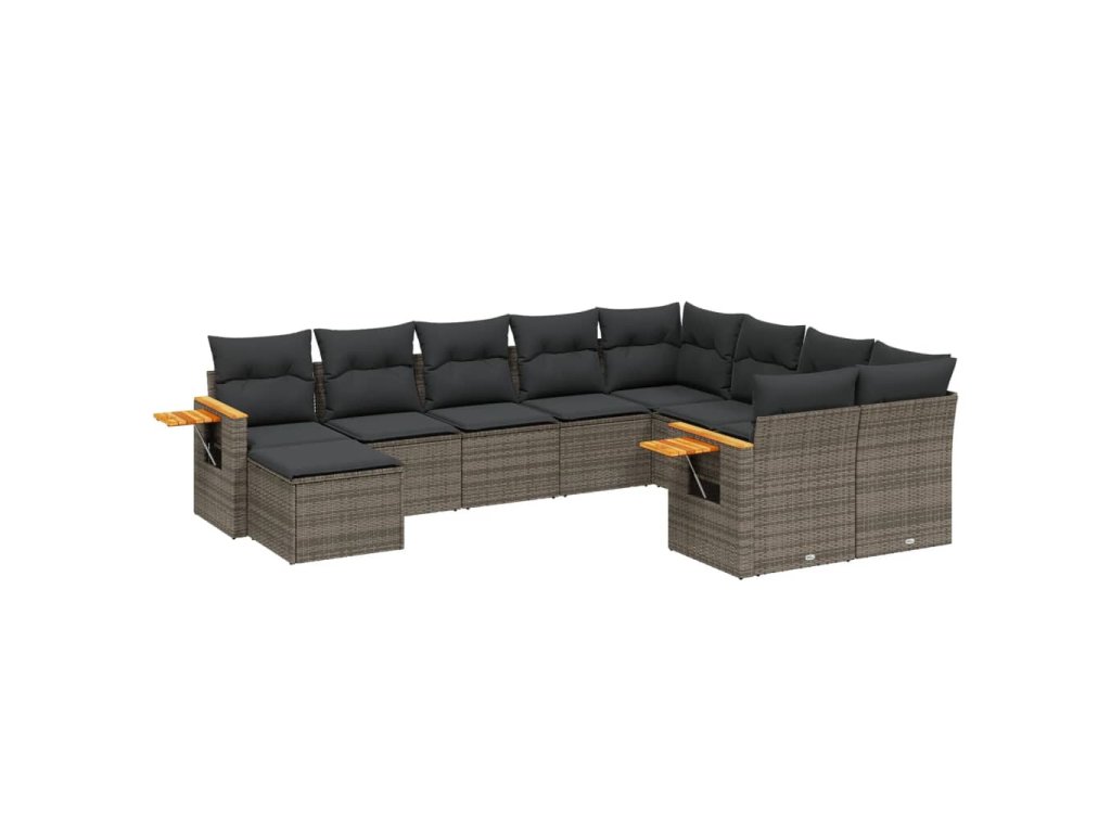 10dílná zahradní sedací souprava s poduškami šedá polyratan 3259561