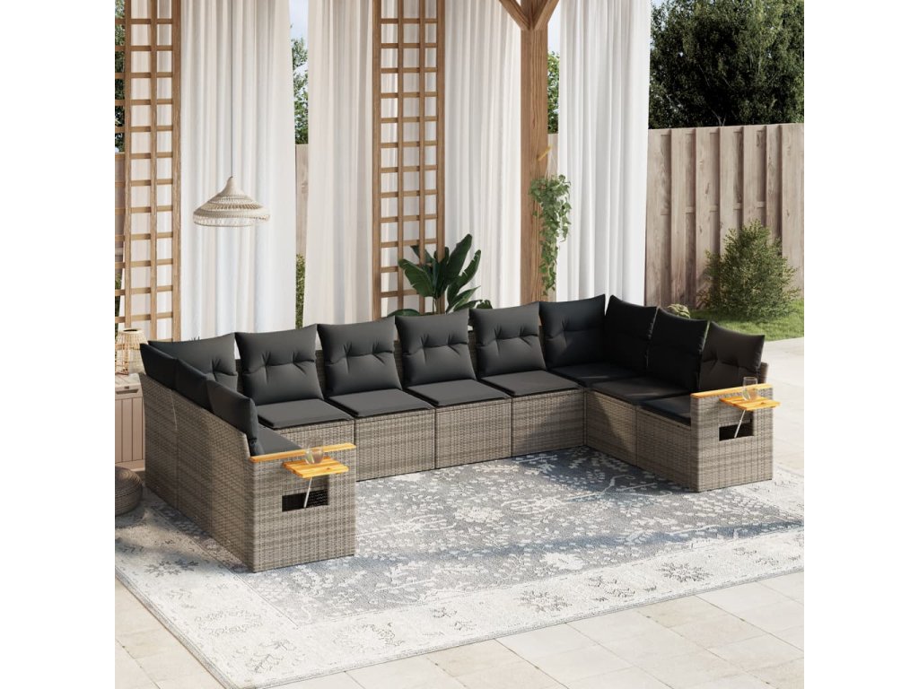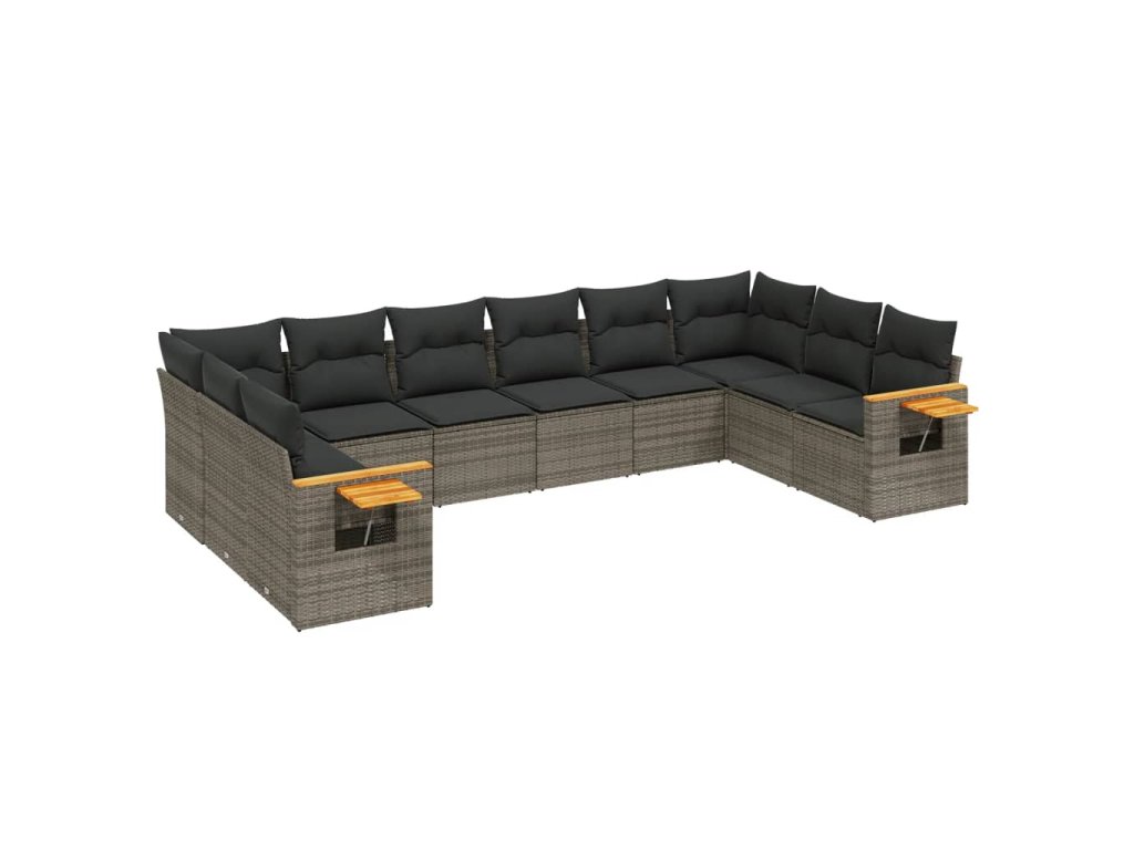 10dílná zahradní sedací souprava s poduškami šedá polyratan 3259568