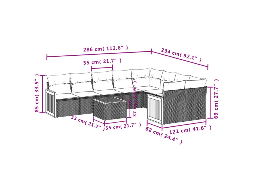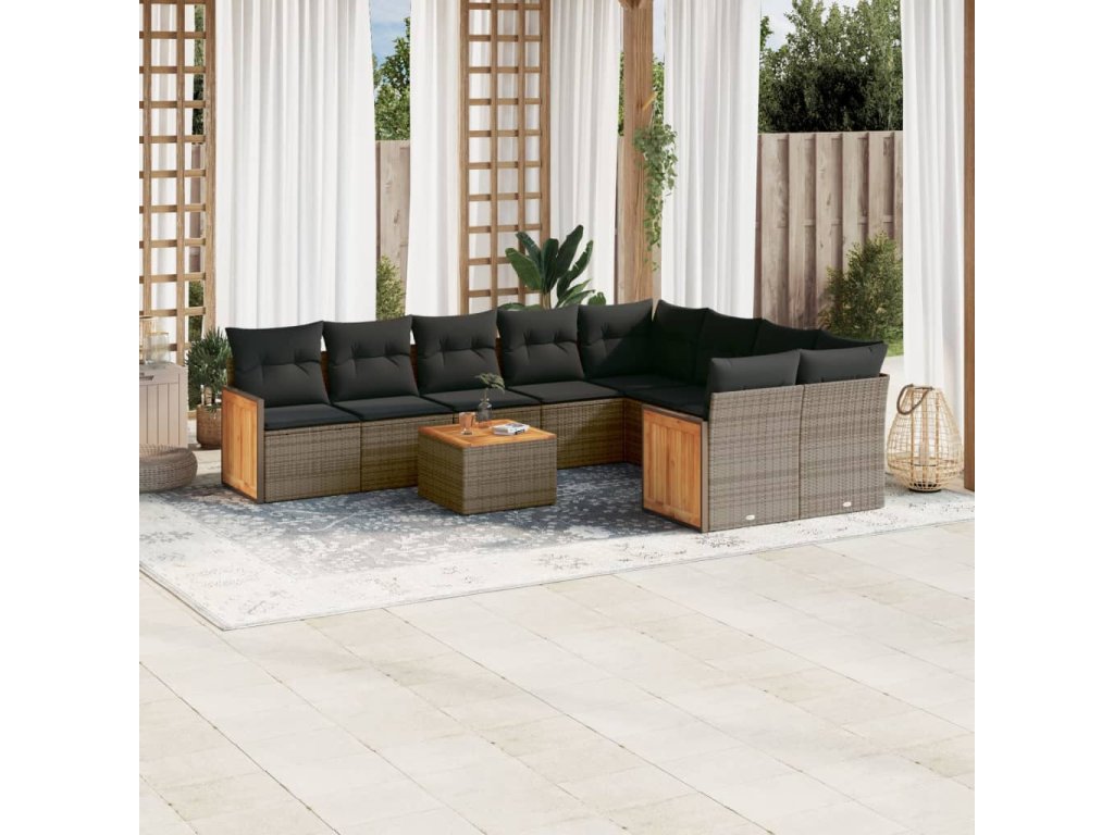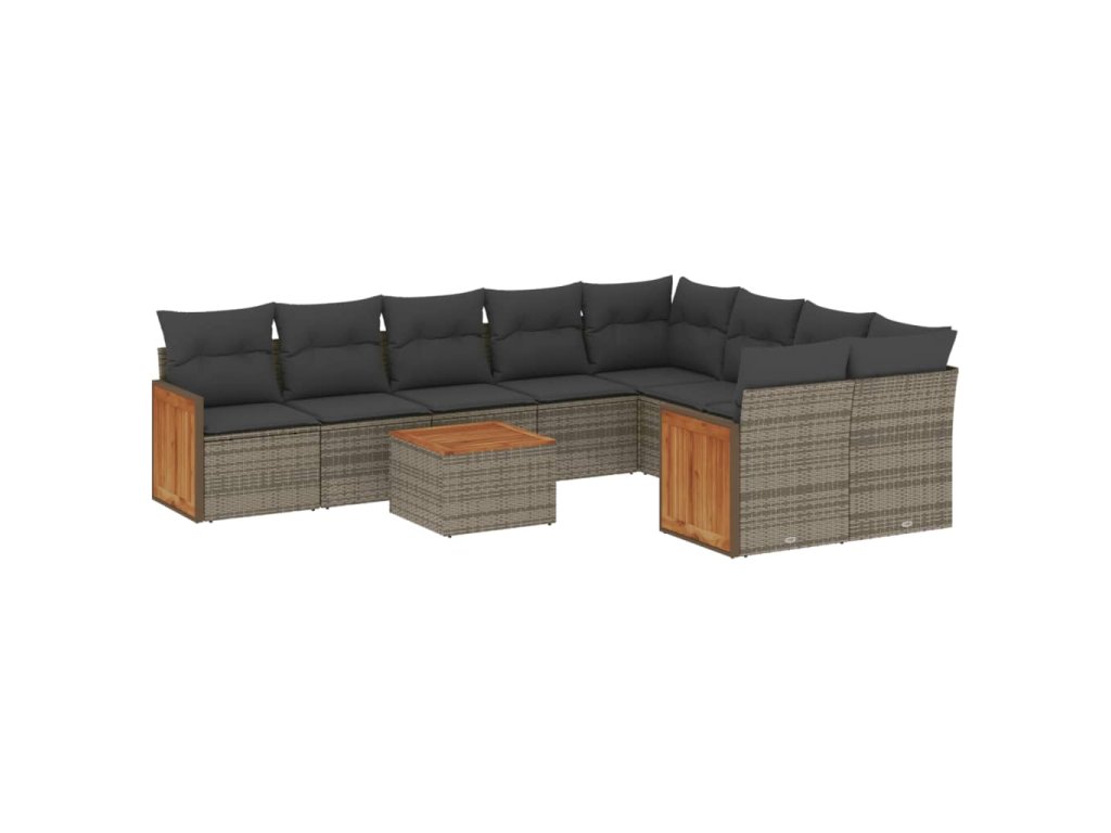10dílná zahradní sedací souprava s poduškami šedá polyratan 3260394