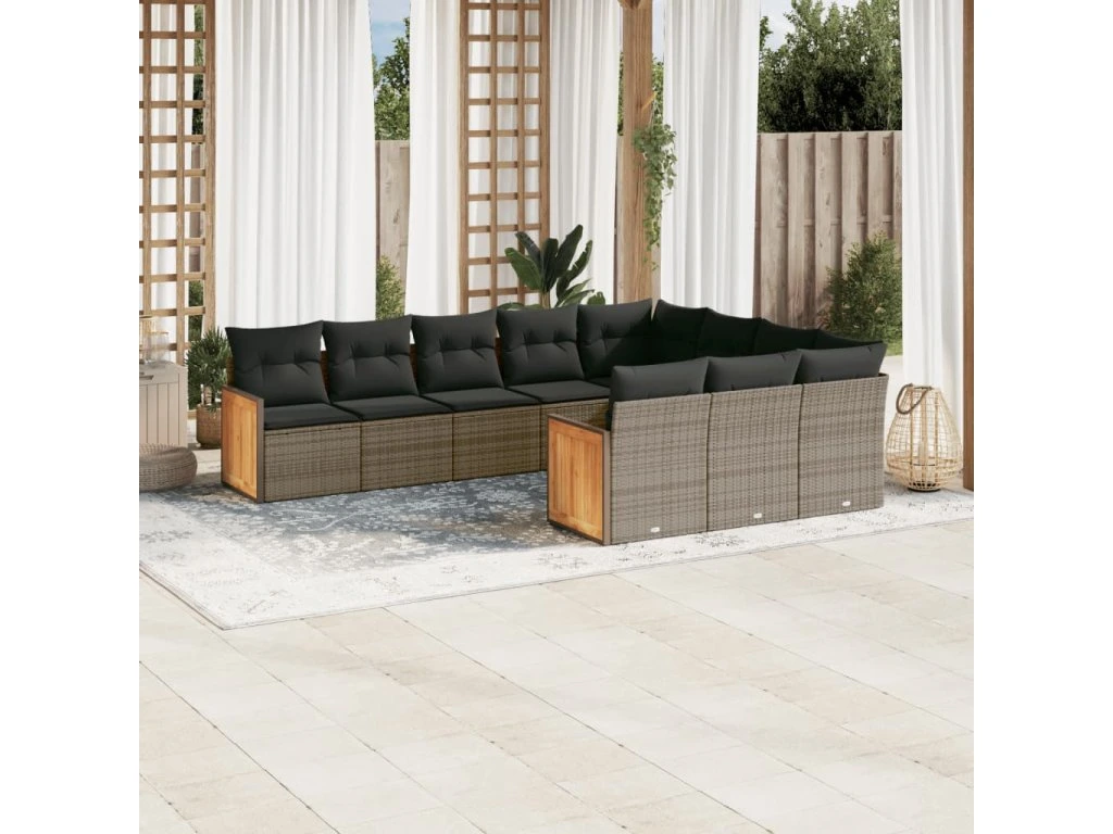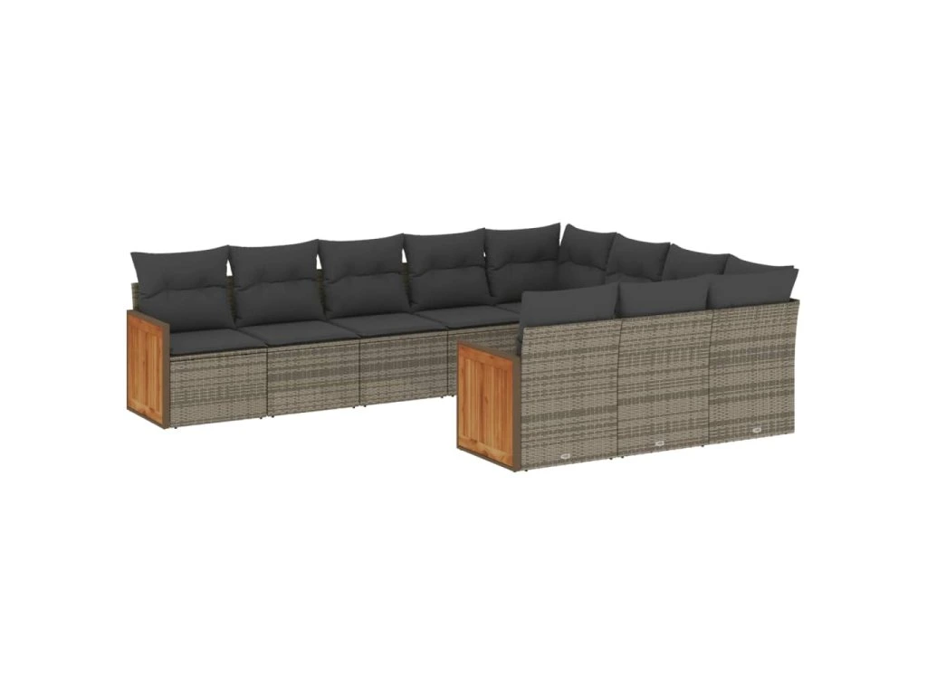 10dílná zahradní sedací souprava s poduškami šedá polyratan 3260422
