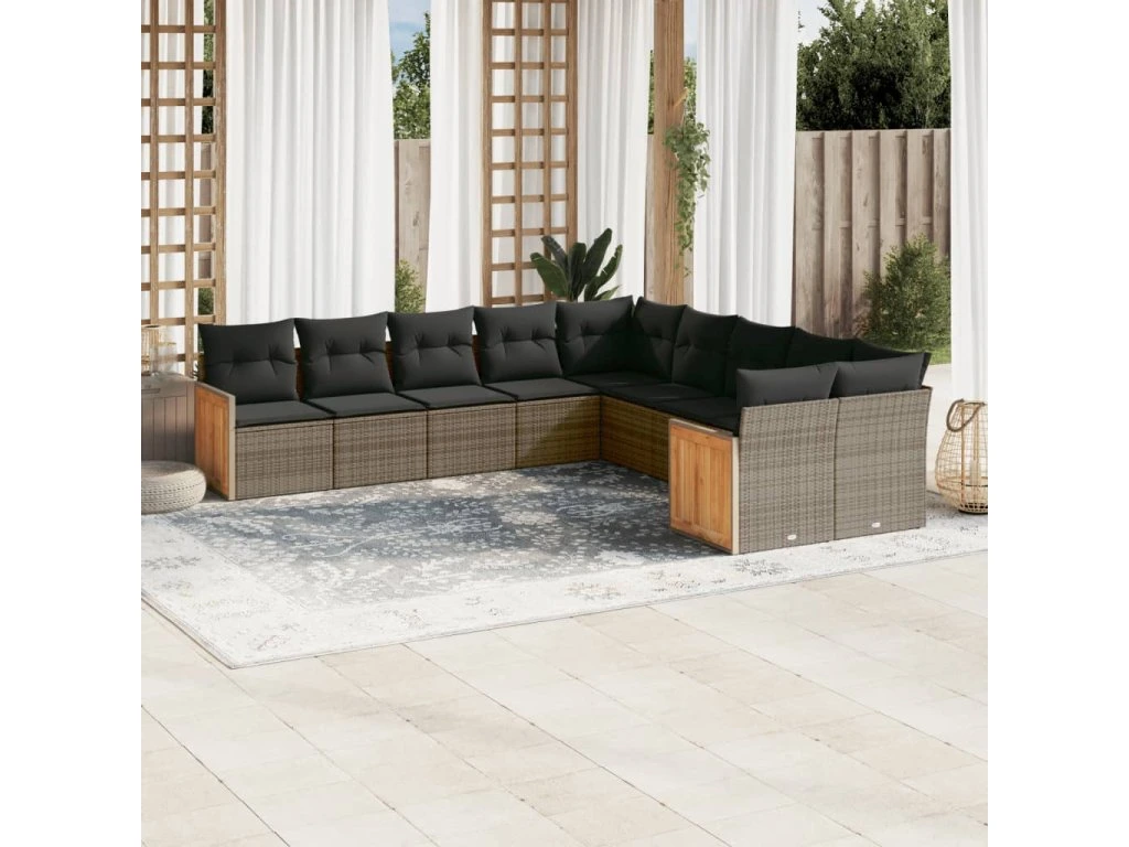 10dílná zahradní sedací souprava s poduškami šedá polyratan 3260436