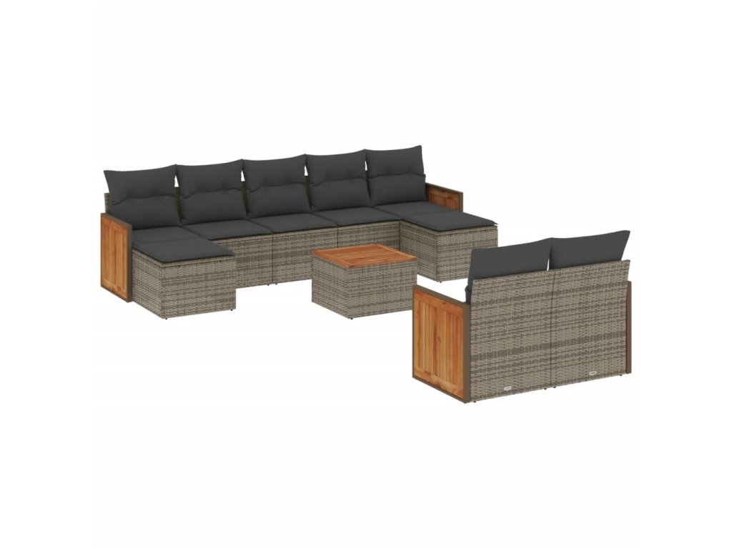 10dílná zahradní sedací souprava s poduškami šedá polyratan 3260492