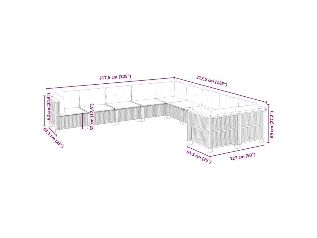 10dílná zahradní sedací souprava s poduškami šedá polyratan 3262044