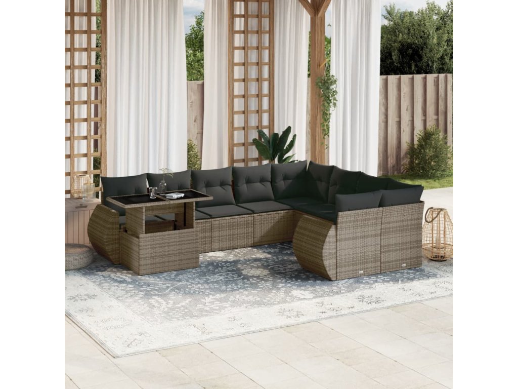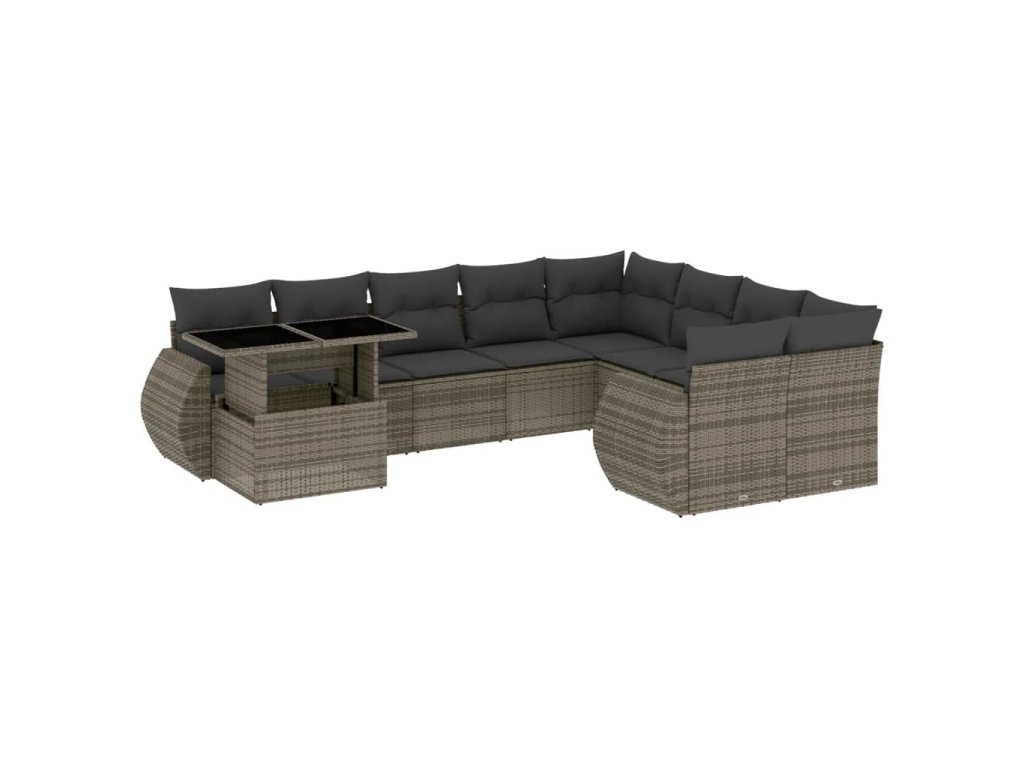 10dílná zahradní sedací souprava s poduškami šedá polyratan 3268770