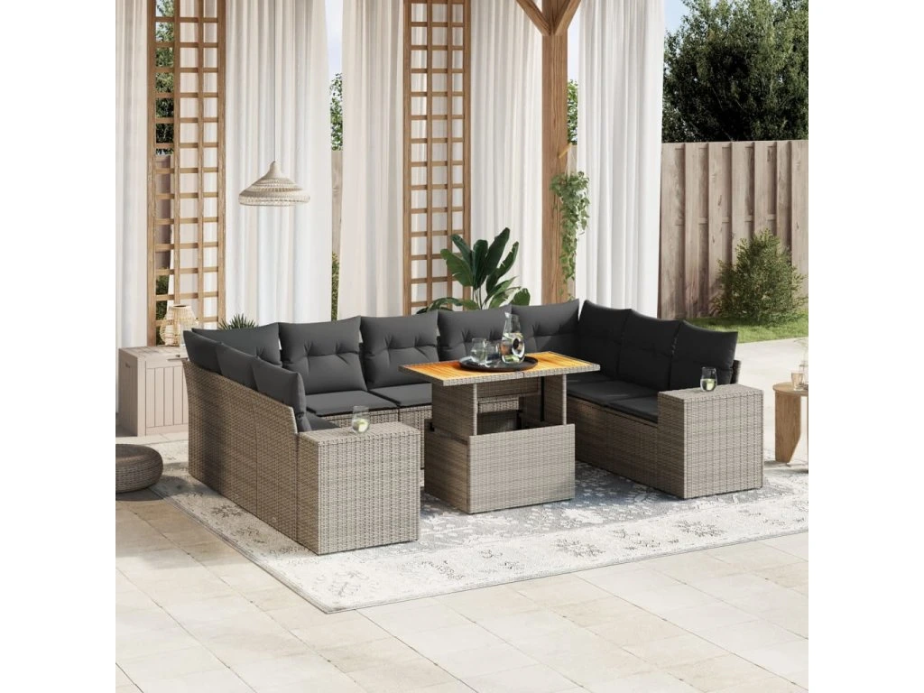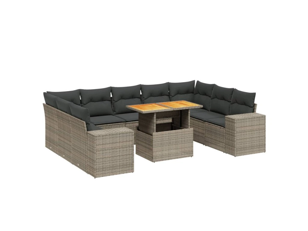 10dílná zahradní sedací souprava s poduškami šedá polyratan 3272782
