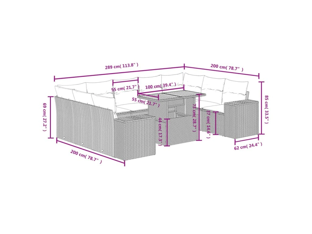 Tato zahradní sedací souprava je dokonalým doplňkem vaší zahrady, terasy nebo dvorku a poskytne vám pohodlné a příjemné místo, kde si můžete povídat s rodinou a přáteli nebo jen tak odpočívat a užívat si pobyt venku.
