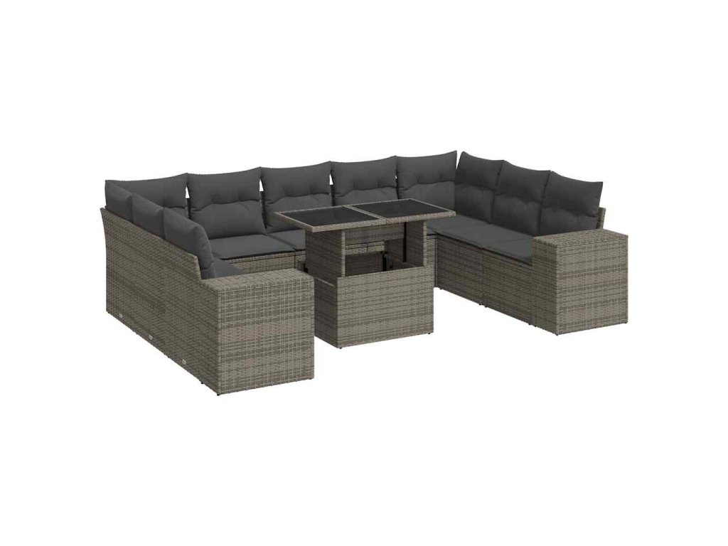 10dílná zahradní sedací souprava s poduškami šedá polyratan 3326861