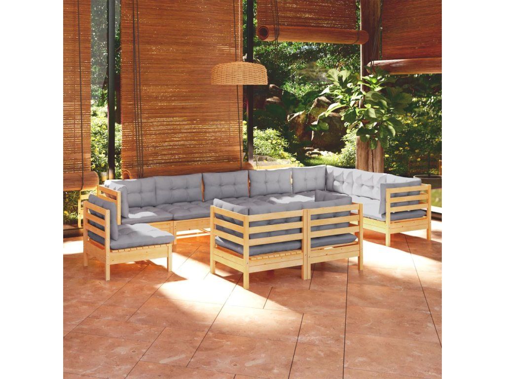 10dílná zahradní sedací souprava šedé podušky masivní borovice 3096778