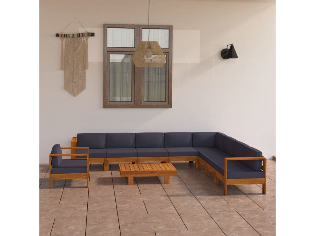 10dílná zahradní sedací souprava tmavě šedé podušky akácie 3057963