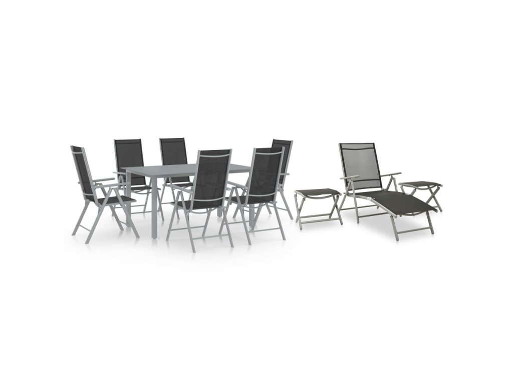 Rám z práškově lakovaného hliníku dodává nábytku na bytelnosti a prodlužuje jeho životnost. Zahradní židle mají sedáky a opěradla zhotovená z textilenu měkkého na dotek. Opěradla lze navíc naklánět do 7 různých poloh, aby se vám vždy příjemně sedělo. Podnožky vám zase zaručí mimořádný komfort. Můžete je také využít jako konferenční stolky, na kterých budete mít nápoje a občerstvení na dosah ruky. Jídelní stůl má skleněnou desku, snadno se tedy čistí navlhčeným hadříkem.