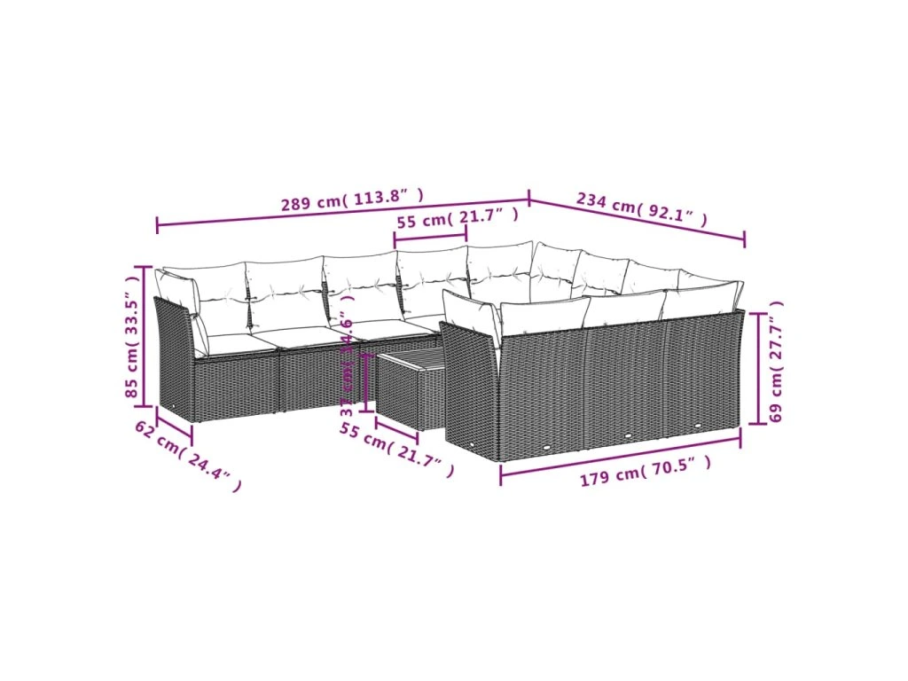 Tato zahradní sedací souprava je dokonalým doplňkem vaší zahrady, terasy nebo dvorku a poskytne vám pohodlné a příjemné místo, kde si můžete povídat s rodinou a přáteli nebo jen tak odpočívat a užívat si pobyt venku.