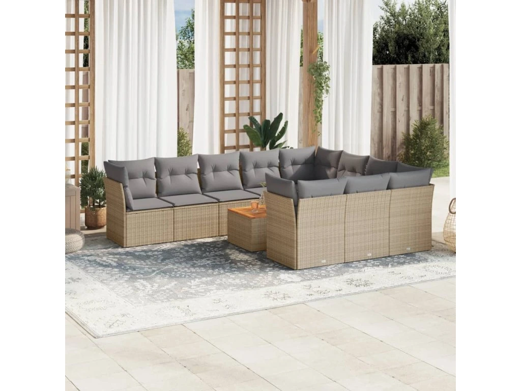 11dílná zahradní sedací souprava a podušky mix béžové polyratan 3256171