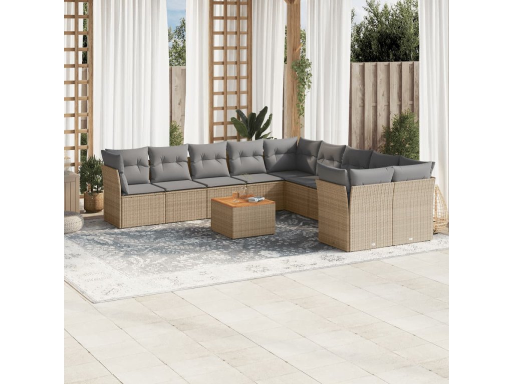 11dílná zahradní sedací souprava a podušky mix béžové polyratan 3256185
