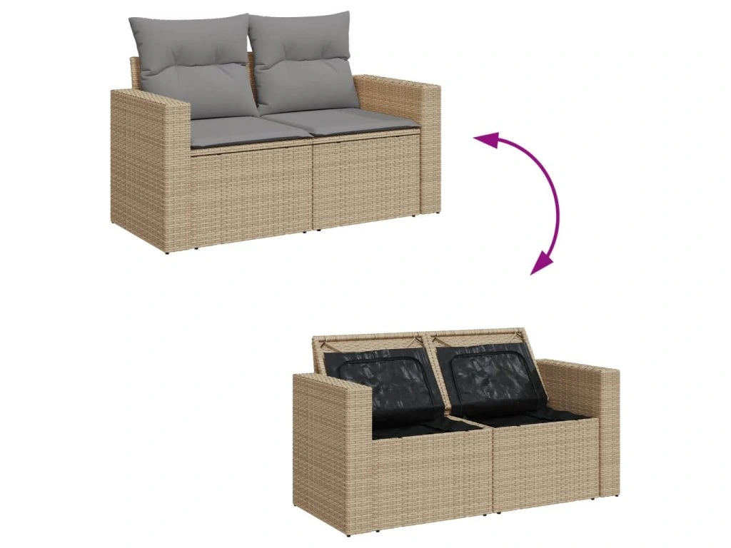 - Úložný prostor s voděodolným vakem: Každý zahradní sedací díl má úložný prostor pod sedákem, který je opatřen voděodolnou vložkou a poslouží vám k ukládání podušek, hraček a dalších věcí. Vnitřní vaky mají horní kryt a lze je bezpečně připevnit k sedákům pomocí suchého zipu, což zaručí větší stabilitu.