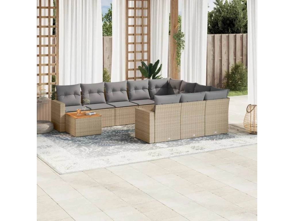 11dílná zahradní sedací souprava a podušky mix béžové polyratan 3256640