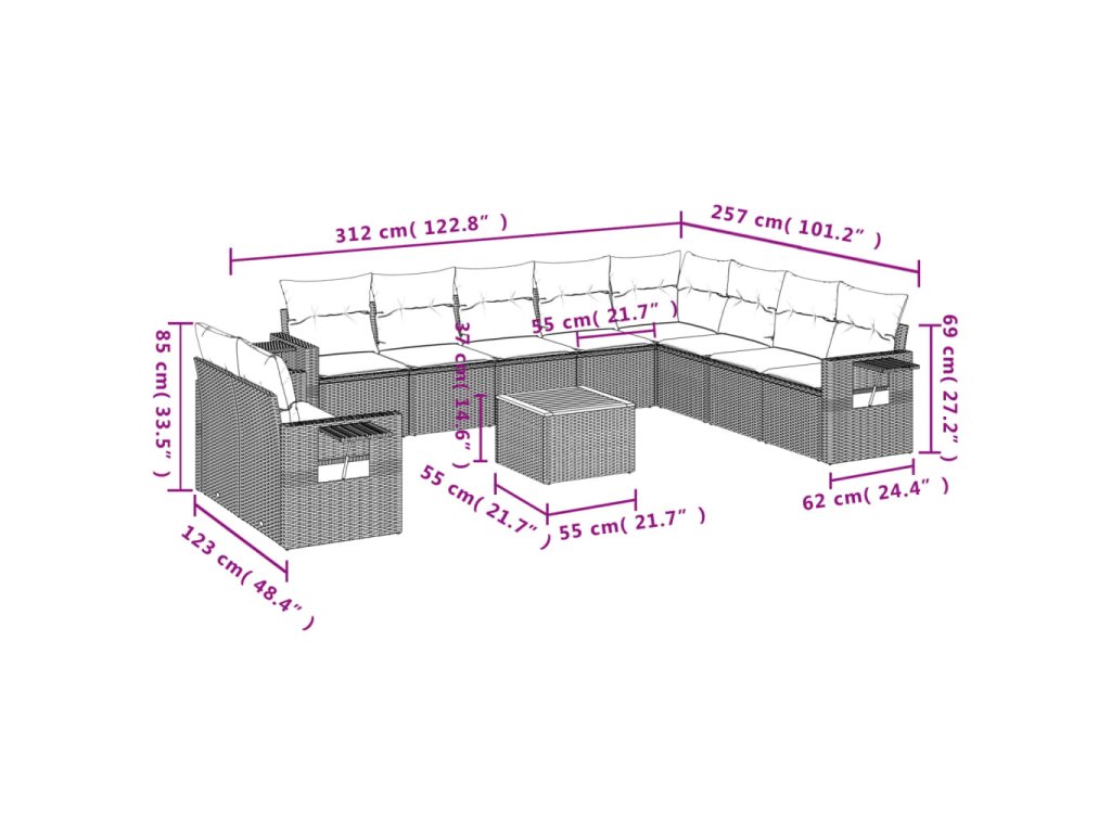 Tato zahradní sedací souprava je dokonalým doplňkem vaší zahrady, terasy nebo dvorku a poskytne vám pohodlné a příjemné místo, kde si můžete povídat s rodinou a přáteli nebo jen tak odpočívat a užívat si pobyt venku.