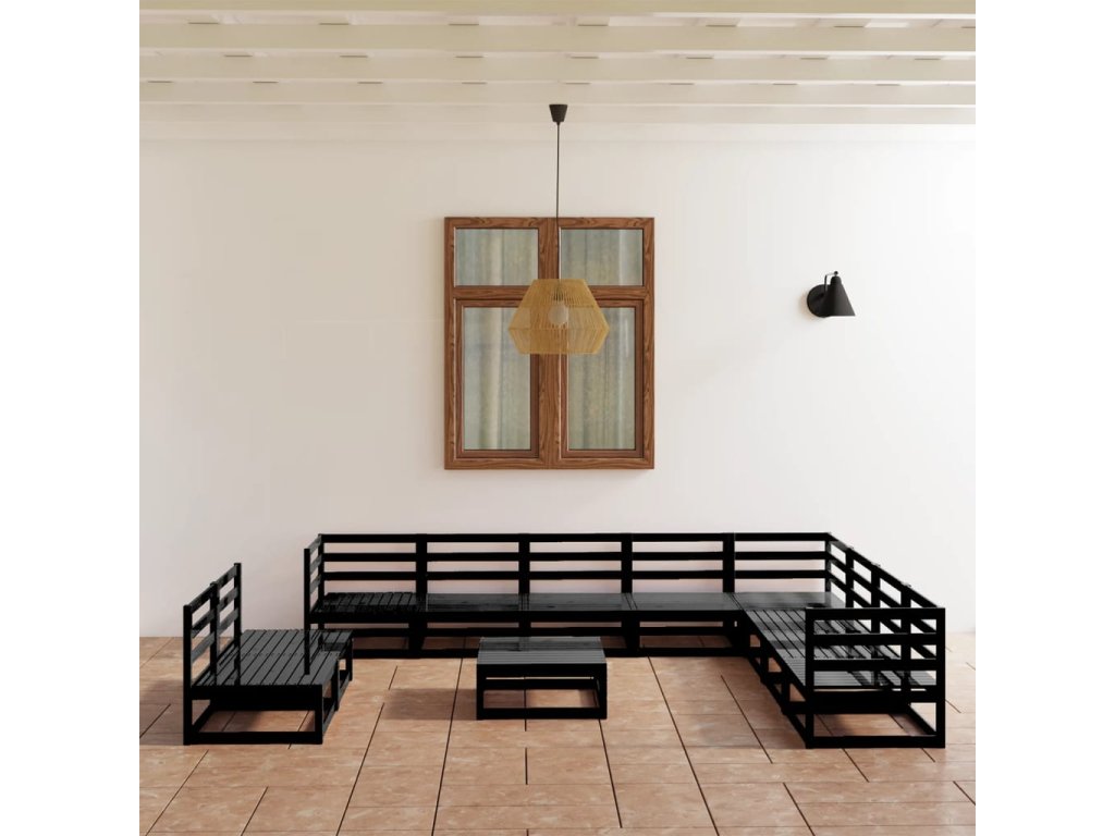 11dílná zahradní sedací souprava černá masivní borovice 3075873