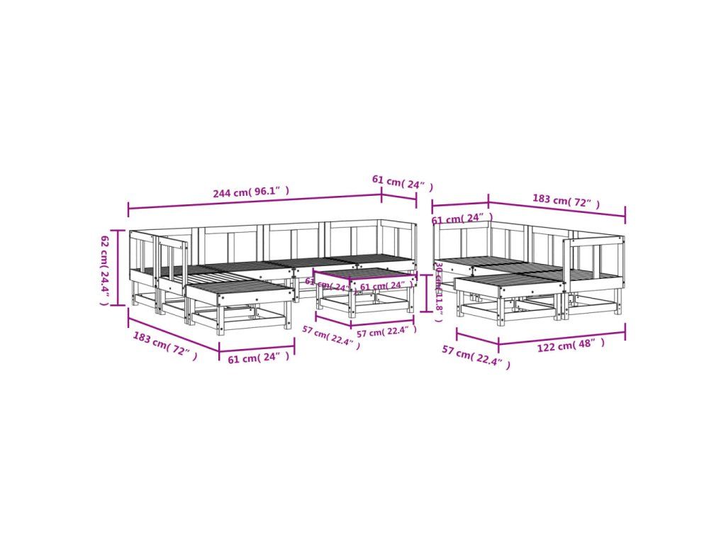 - Rozměry středové pohovky: 61 x 61 x 62 cm (D x Š x V)