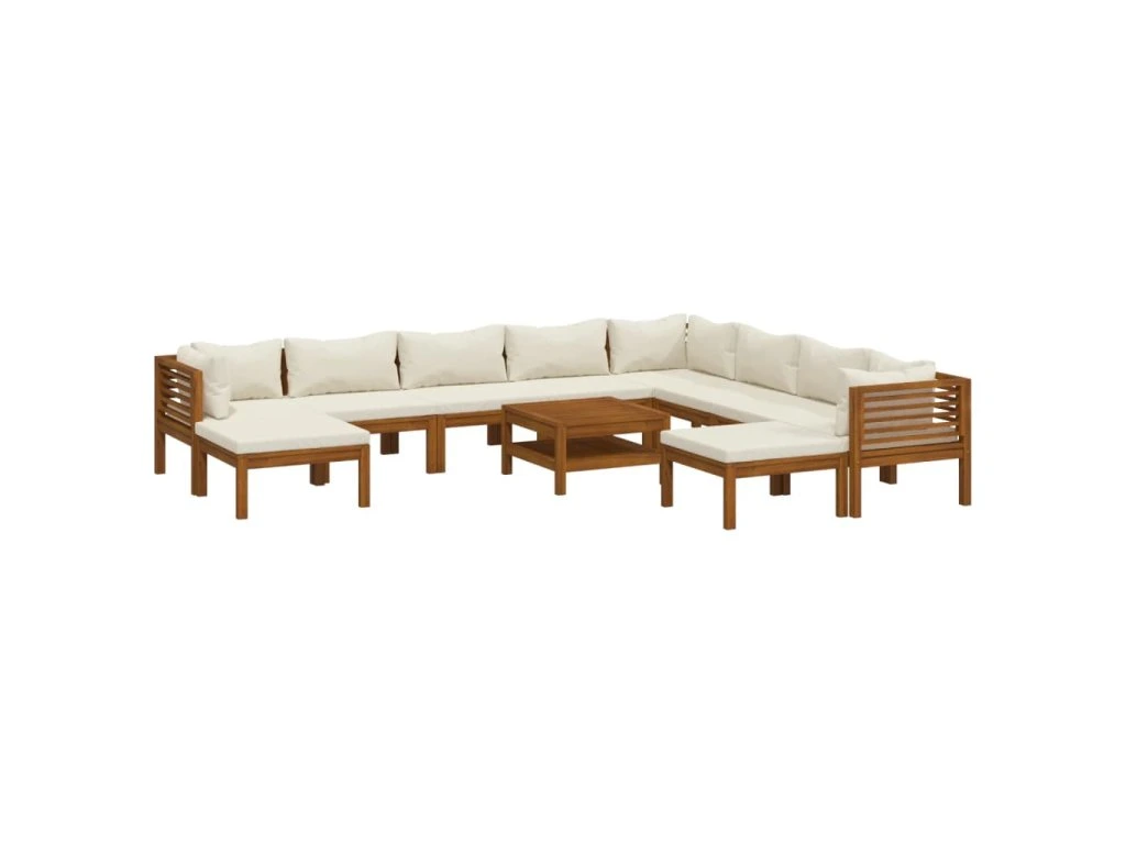 11dílná zahradní sedací souprava krémové podušky masivní akácie 3086942