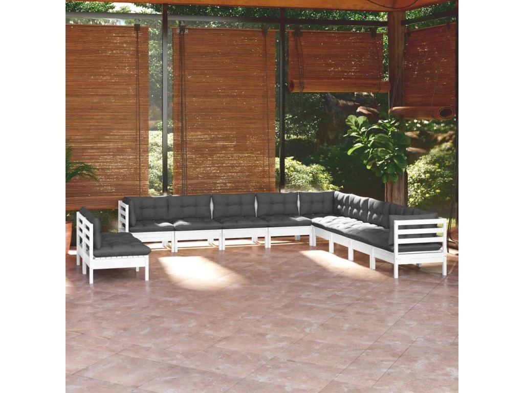 11dílná zahradní sedací souprava podušky bílá masivní borovice 3096852