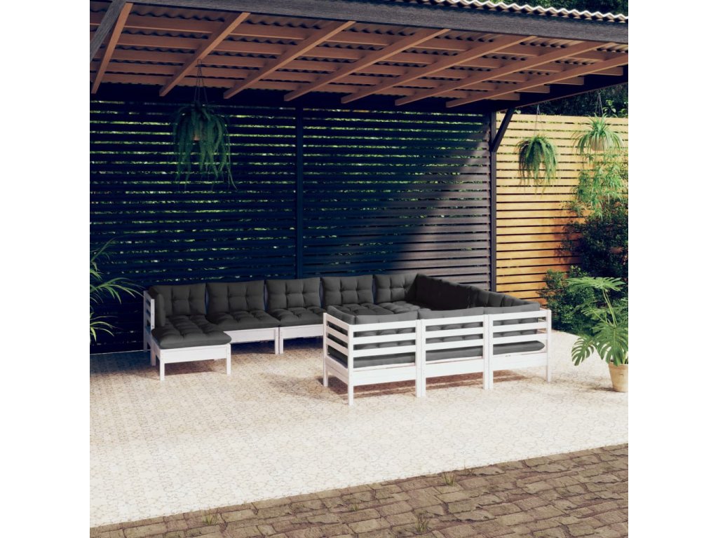 11dílná zahradní sedací souprava s poduškami bílá borovice 3097044