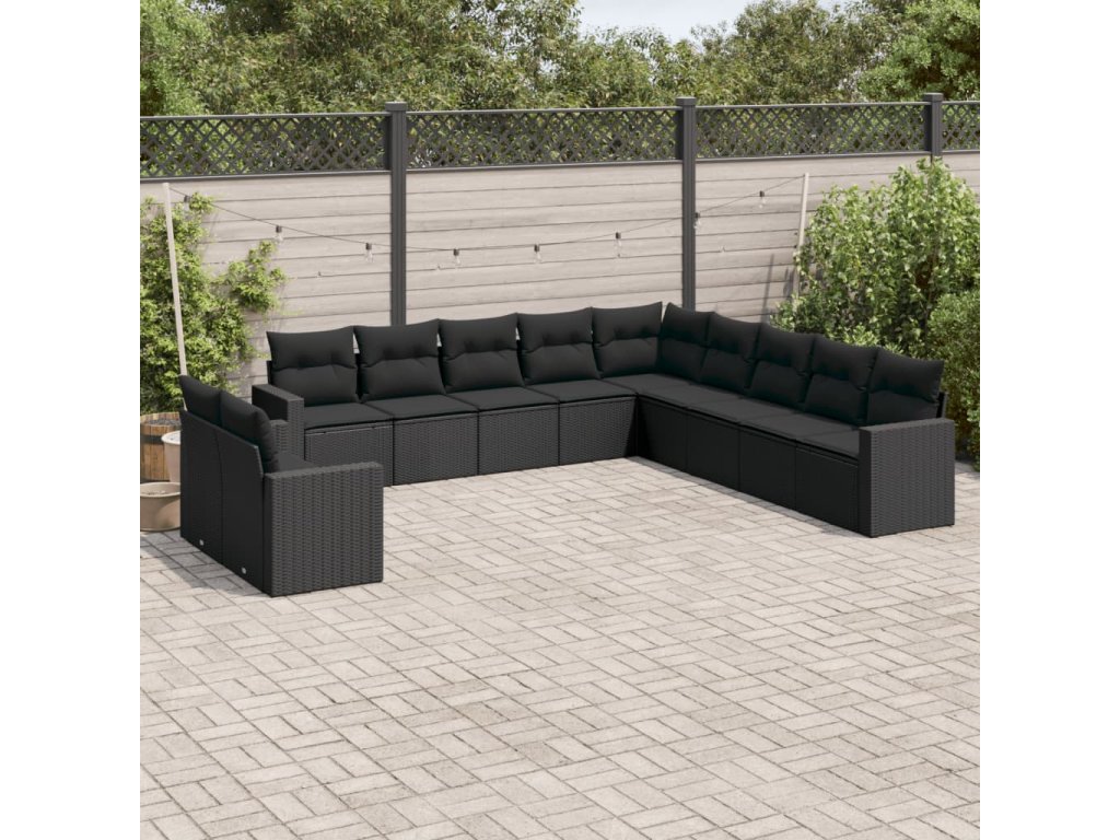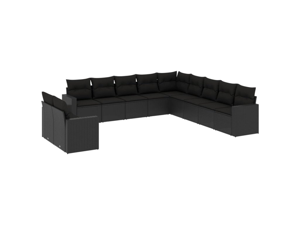 11dílná zahradní sedací souprava s poduškami černá polyratan 3219175