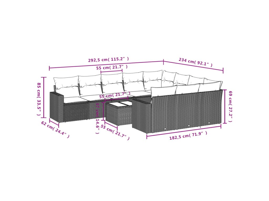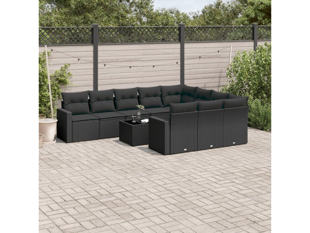 11dílná zahradní sedací souprava s poduškami černá polyratan 3219485