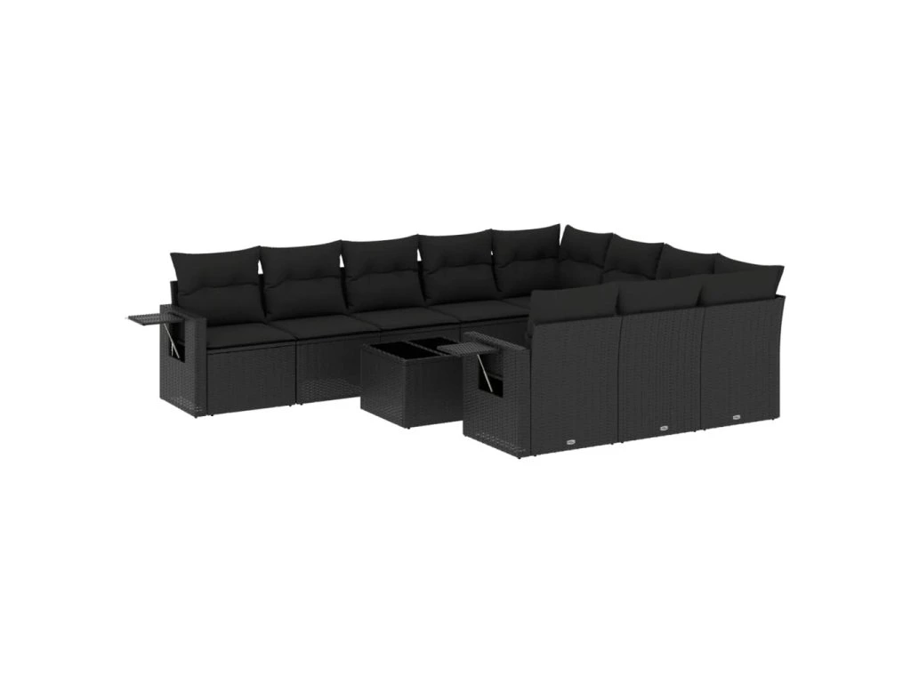 11dílná zahradní sedací souprava s poduškami černá polyratan 3220694