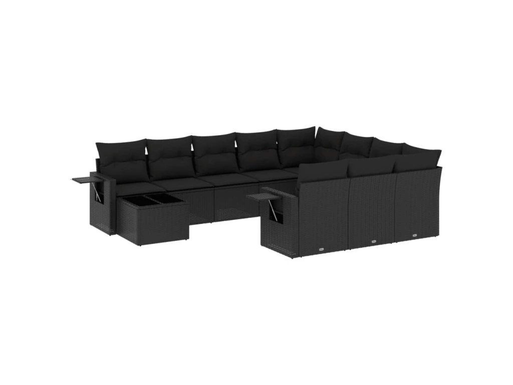 11dílná zahradní sedací souprava s poduškami černá polyratan 3220724