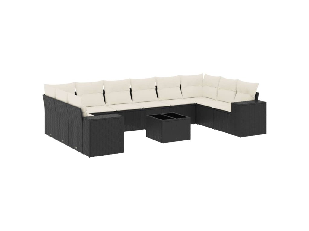 11dílná zahradní sedací souprava s poduškami černá polyratan 3223075
