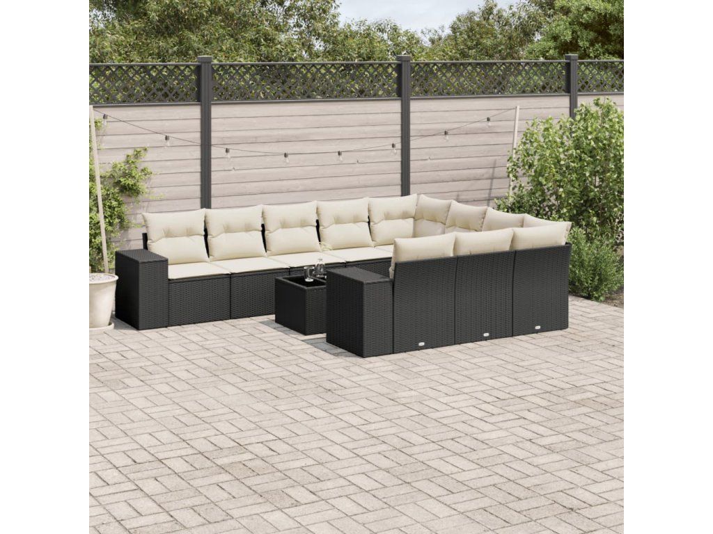 11dílná zahradní sedací souprava s poduškami černá polyratan 3223095