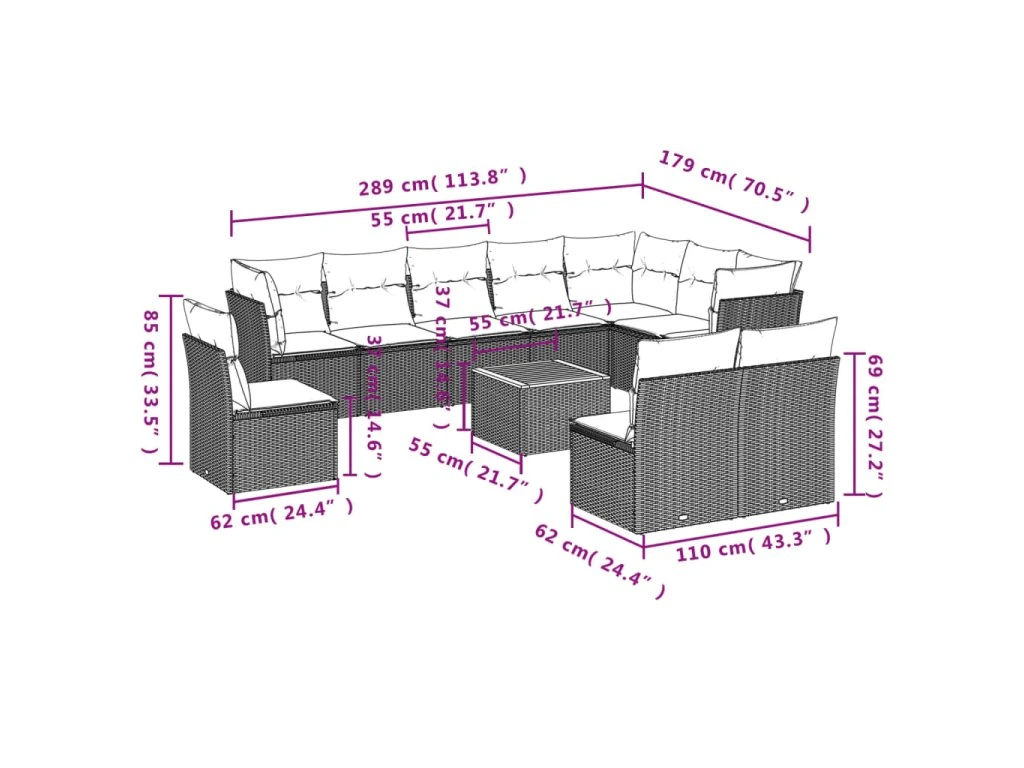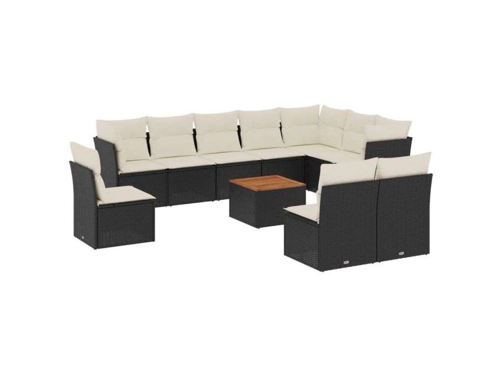 11dílná zahradní sedací souprava s poduškami černá polyratan 3223697
