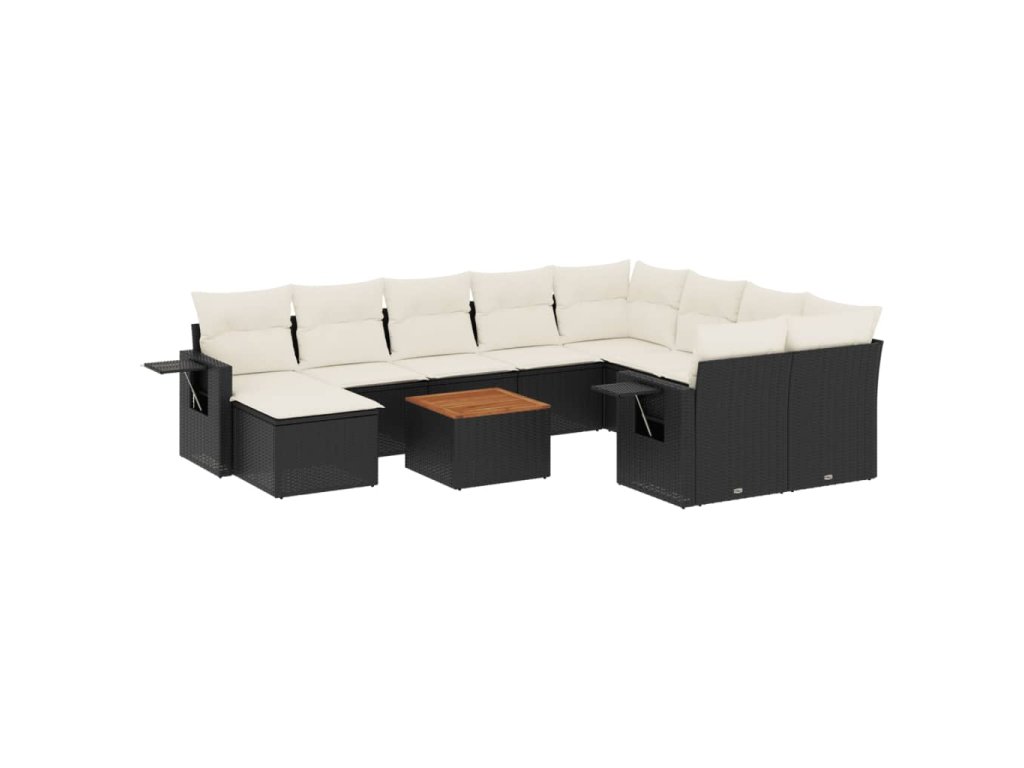 11dílná zahradní sedací souprava s poduškami černá polyratan 3224852