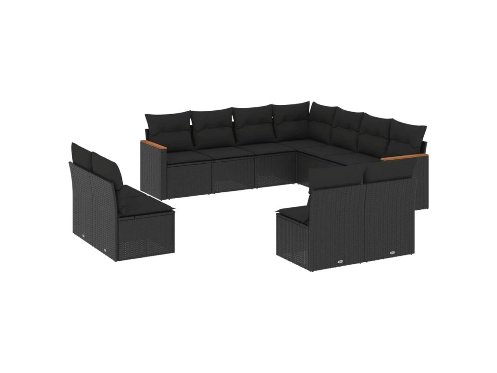 11dílná zahradní sedací souprava s poduškami černá polyratan 3226083