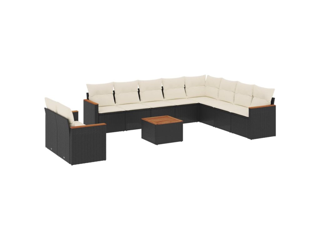 11dílná zahradní sedací souprava s poduškami černá polyratan 3226119