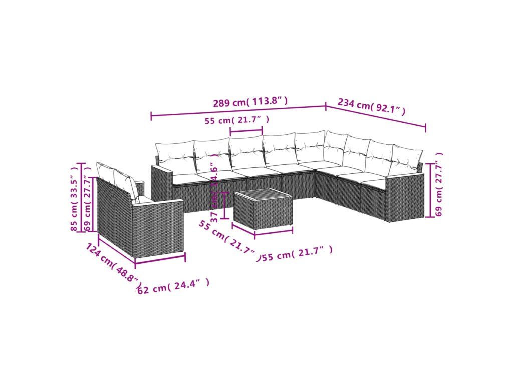Tato zahradní sedací souprava je dokonalým doplňkem vaší zahrady, terasy nebo dvorku a poskytne vám pohodlné a příjemné místo, kde si můžete povídat s rodinou a přáteli nebo jen tak odpočívat a užívat si pobyt venku.