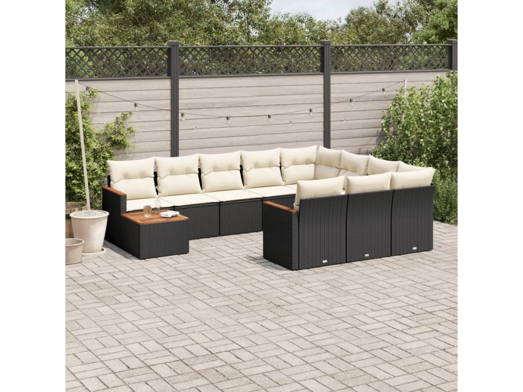 11dílná zahradní sedací souprava s poduškami černá polyratan 3226364