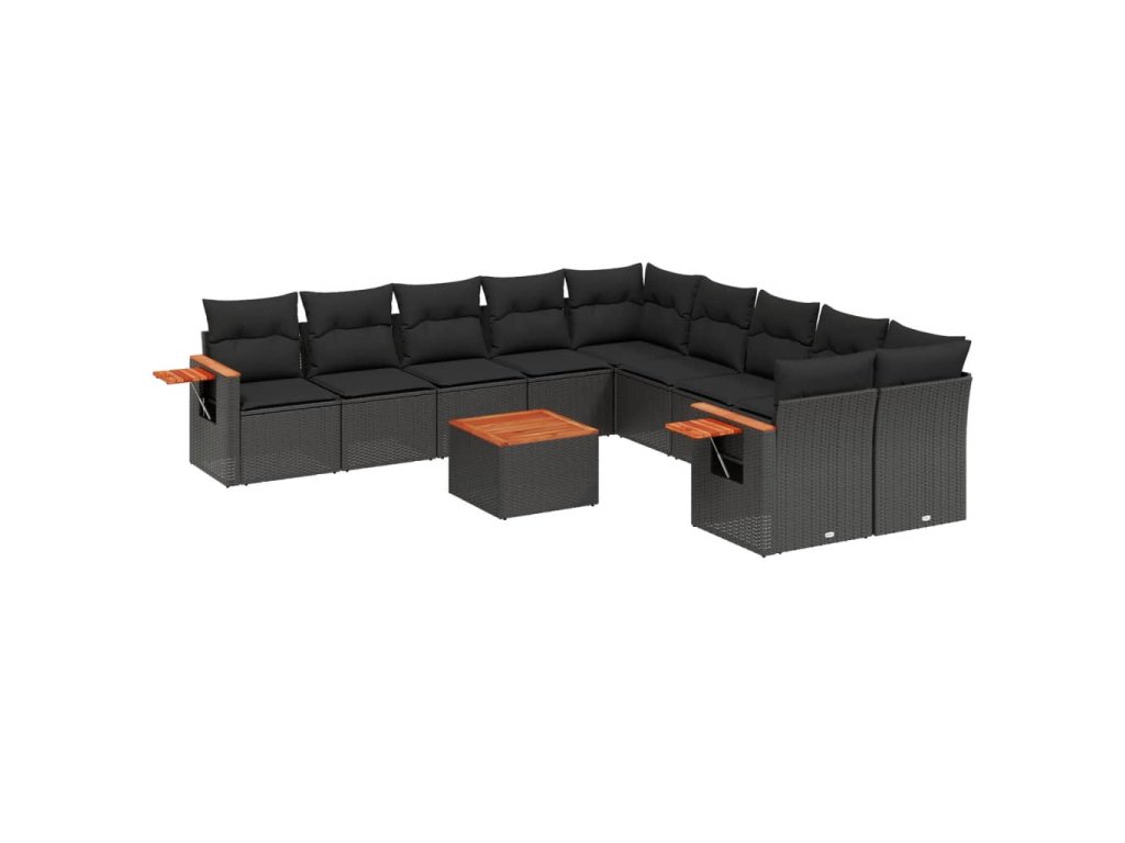 11dílná zahradní sedací souprava s poduškami černá polyratan 3227196